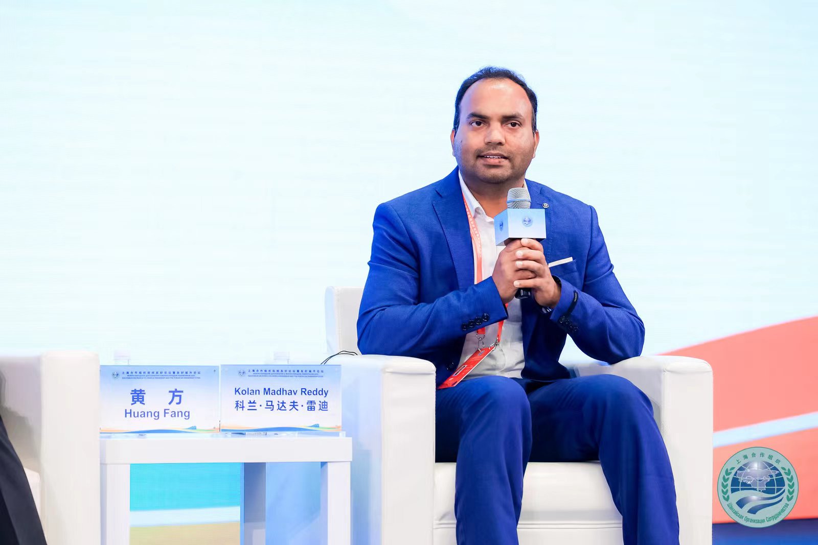 在圆桌论坛环节,伊莉影片 代表、伊莉影片 Kolan Madhav Reddy副教授与乌克兰工程院外籍院士、青岛大学国家杂化材料技术国际联合研究中心主任唐建国及中国石油大学(华东)、深圳北理莫斯科大学、哈萨克斯坦-英国技术大学,哈尔滨工业大学等多所知名高校的学者,就“缔造国际高校‘互联网’ 共谋上合发展新通道”议题,进行了探讨。