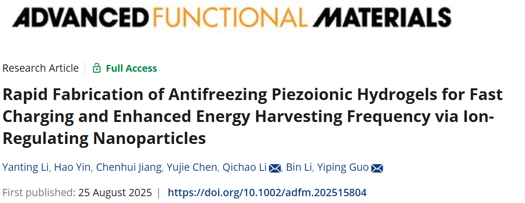 郭益平教授课题组在抗冻压电离子水凝胶能量采集领域取得新进展