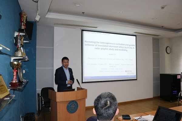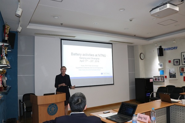 随后,双方教授分别围绕能源材料及轻金属等方向做了精彩的学术报告,杨旭东教授和NTNU的Fride VULLUM-BRUER教授围绕能源材料分别做了题为Highly efficient perovskite solar cells with large area and high stability和Research on batteries at NTNU - some examples的学术报告,为在能源领域的合作增进交流。