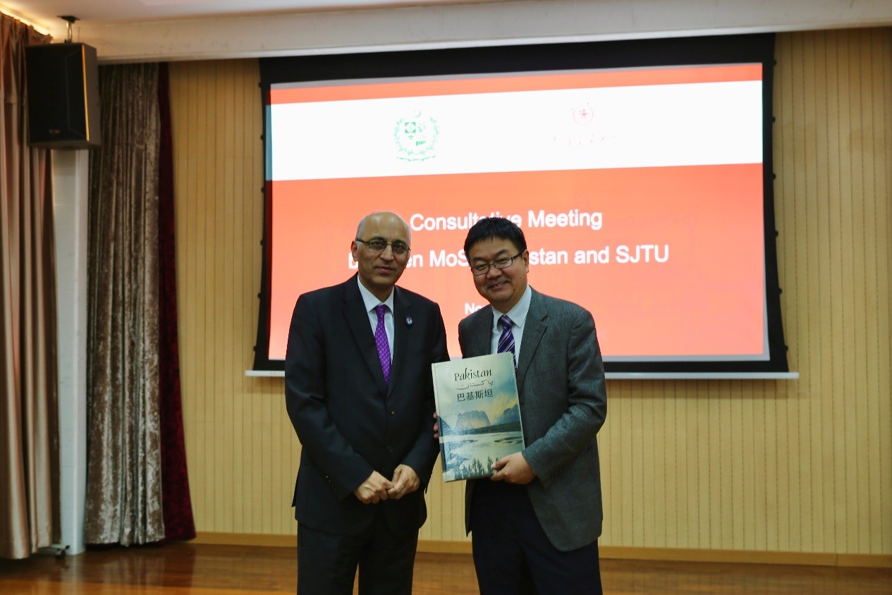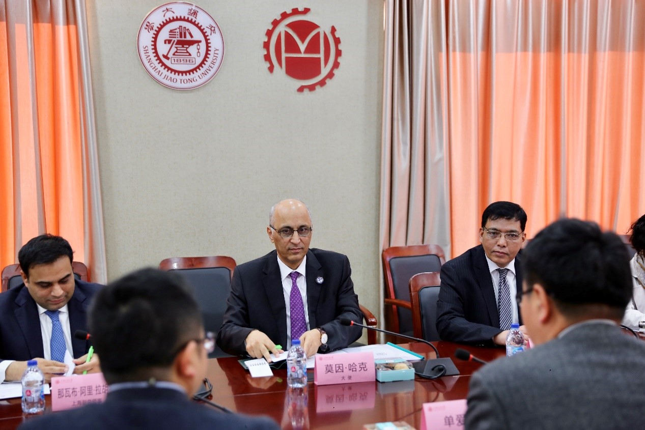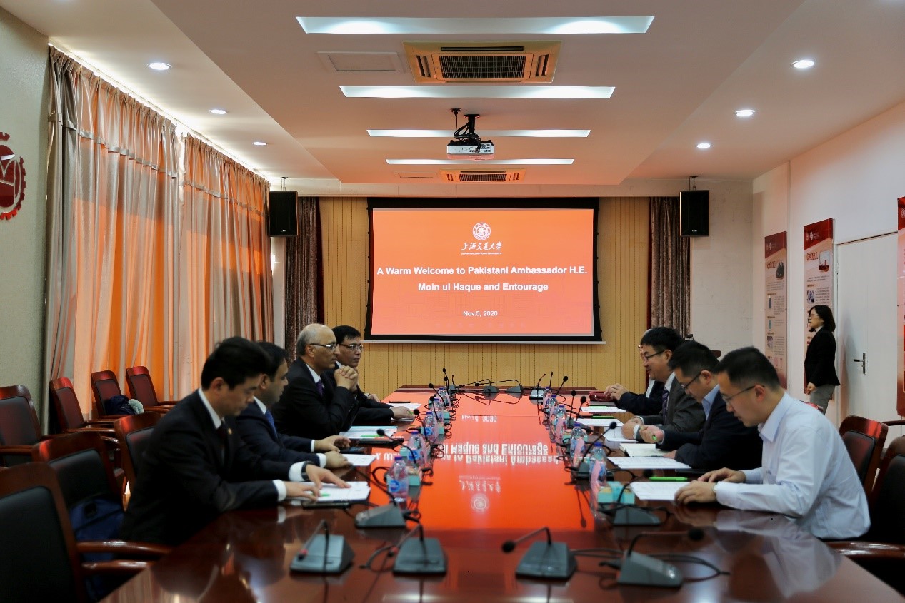 11月5日下午,巴基斯坦驻华大使Moin ul Haque(莫因·哈克)一行访问伊莉影片 。校党委书记杨振斌在闵行校区会见了大使一行。