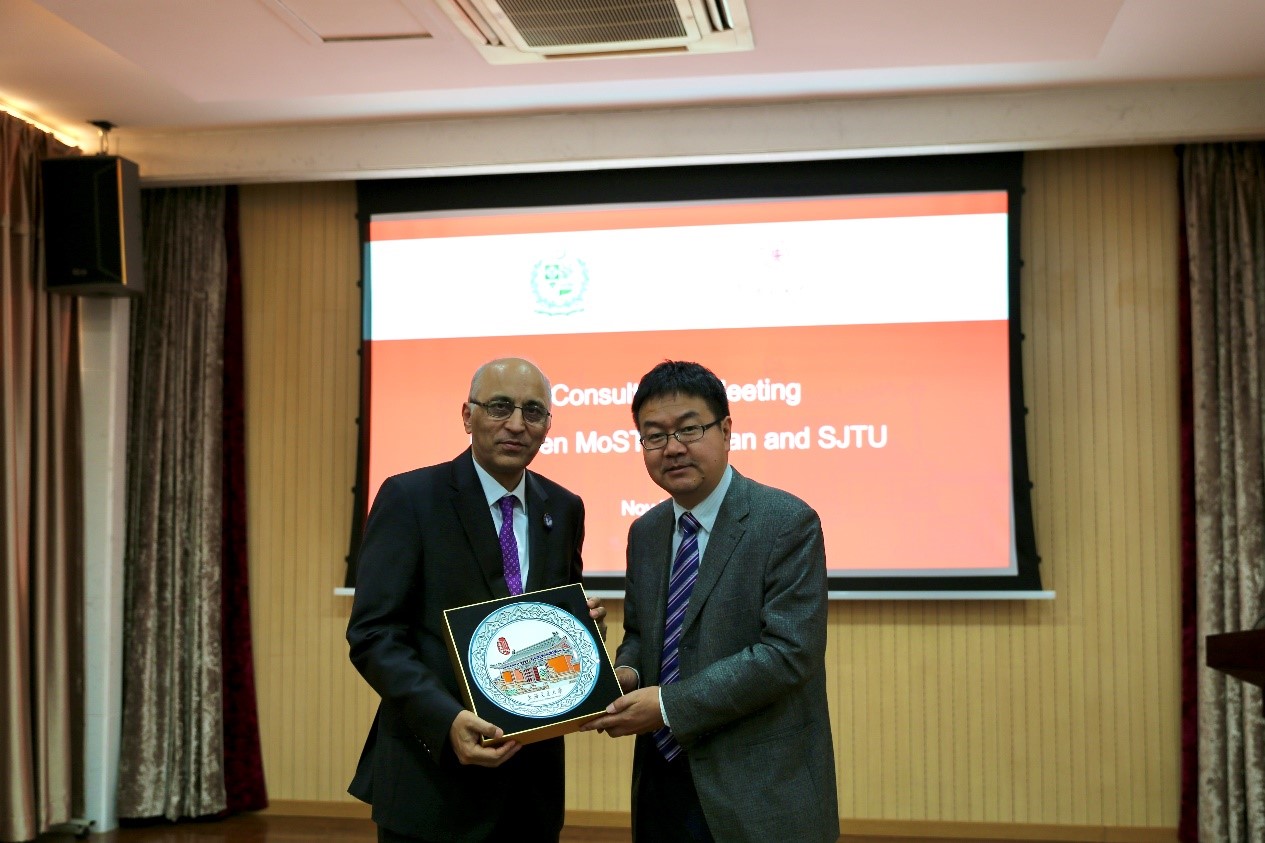 杨振斌对大使一行来访表示热烈欢迎。他简要回顾了学校悠久的历史,介绍了学校在学科建设、人才培养、国际合作交流等方面取得的成果。他表示,中巴睦邻友好关系密切,交大愿意为中巴友谊继续做出贡献,他还介绍到,目前在交大就读的巴基斯坦留学生已接近300人,其中不乏优秀学子代表交大获得了诸多国内外荣誉。