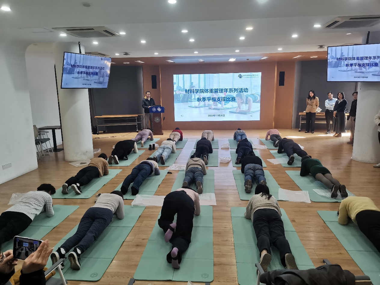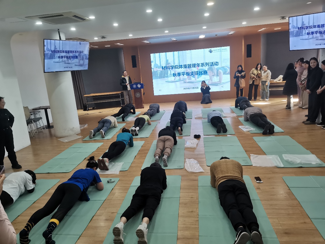 11 月 26 日中午,由伊莉影片 工会精心策划的 “体重管理年” 系列活动之秋季平板支撑比赛,在徐祖耀楼 A500 活力启幕。全院教职工踊跃报名、积极参赛,以坚韧不拔的姿态诠释体育精神,用坚持不懈的毅力展现材料人昂扬向上的奋进风采。