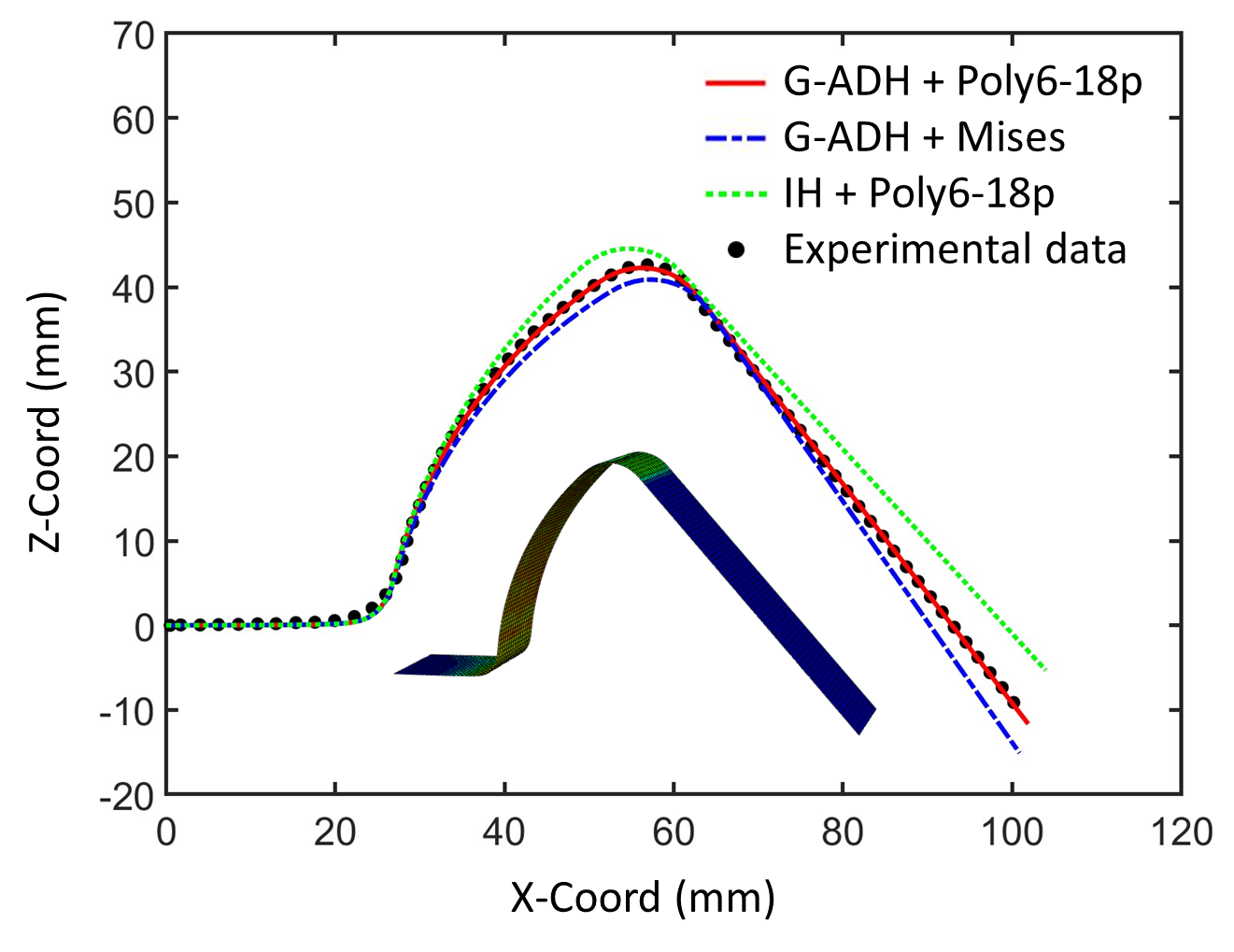 图4.提出的扭曲硬化模型应用于TRIP1180高强度U形件拉深回弹预测