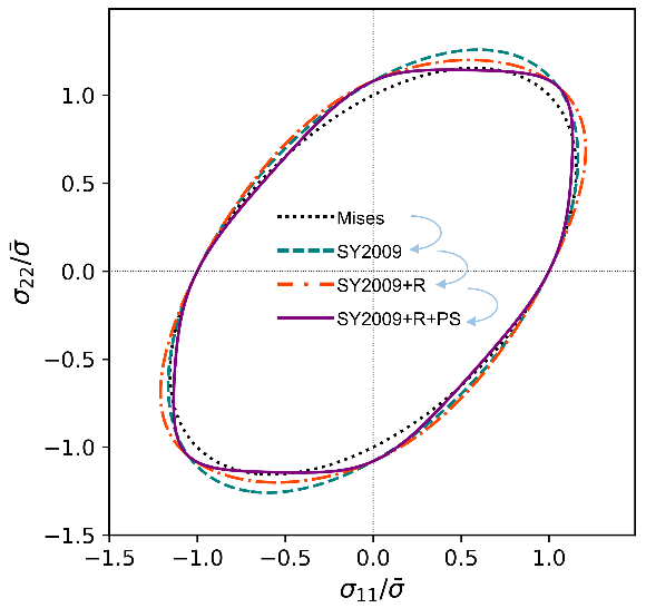 图3.非线性应变路径下屈服轨迹演化规律